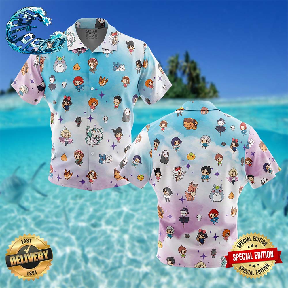 Chibi Studio Ghibli Pattern Button Up Hawaiian Shirt