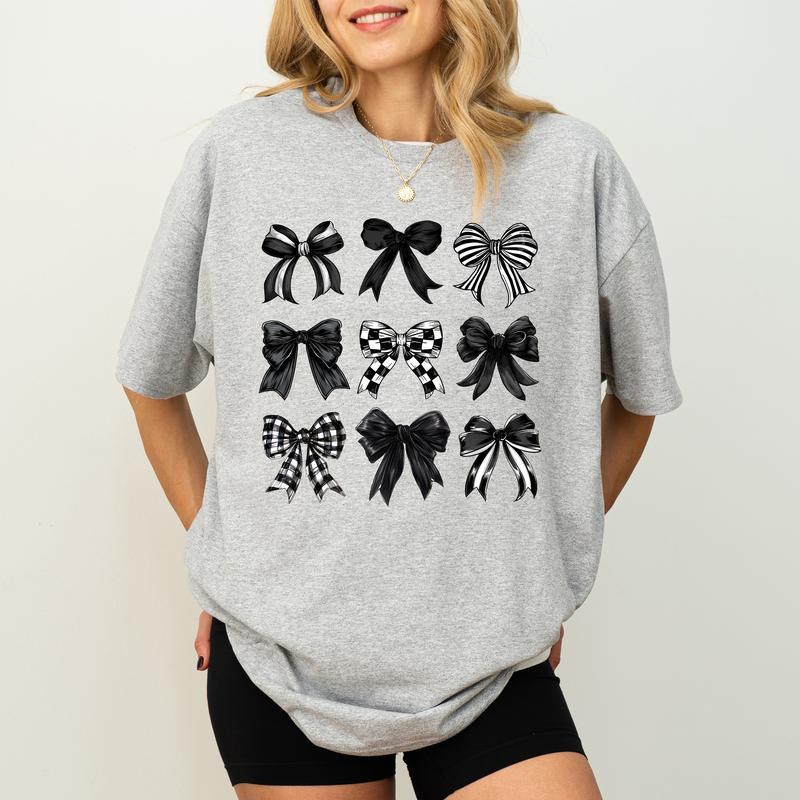 Coquette Black Checkered Bow Shirt, Dark Coquette Graphic Printed Tee, Gothic Bows Shirt Unisex Graphic