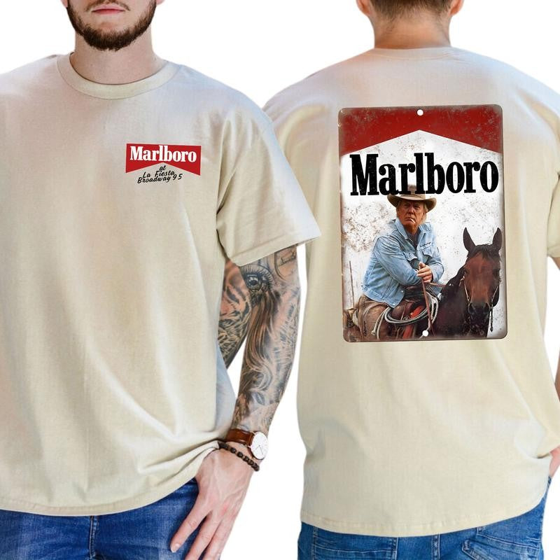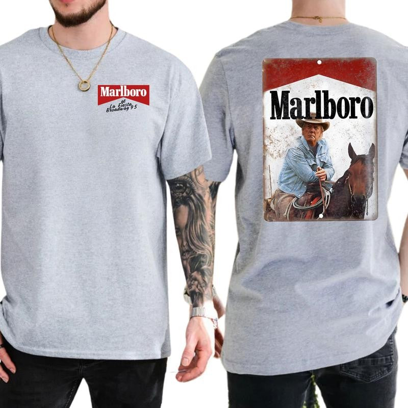 Cowboy Trump T-Shirt, Marlboro Parody Sublimation Retro Presidential Shirt, Classic Cotton Top, Soft Fabric Shortsleeve Shirt