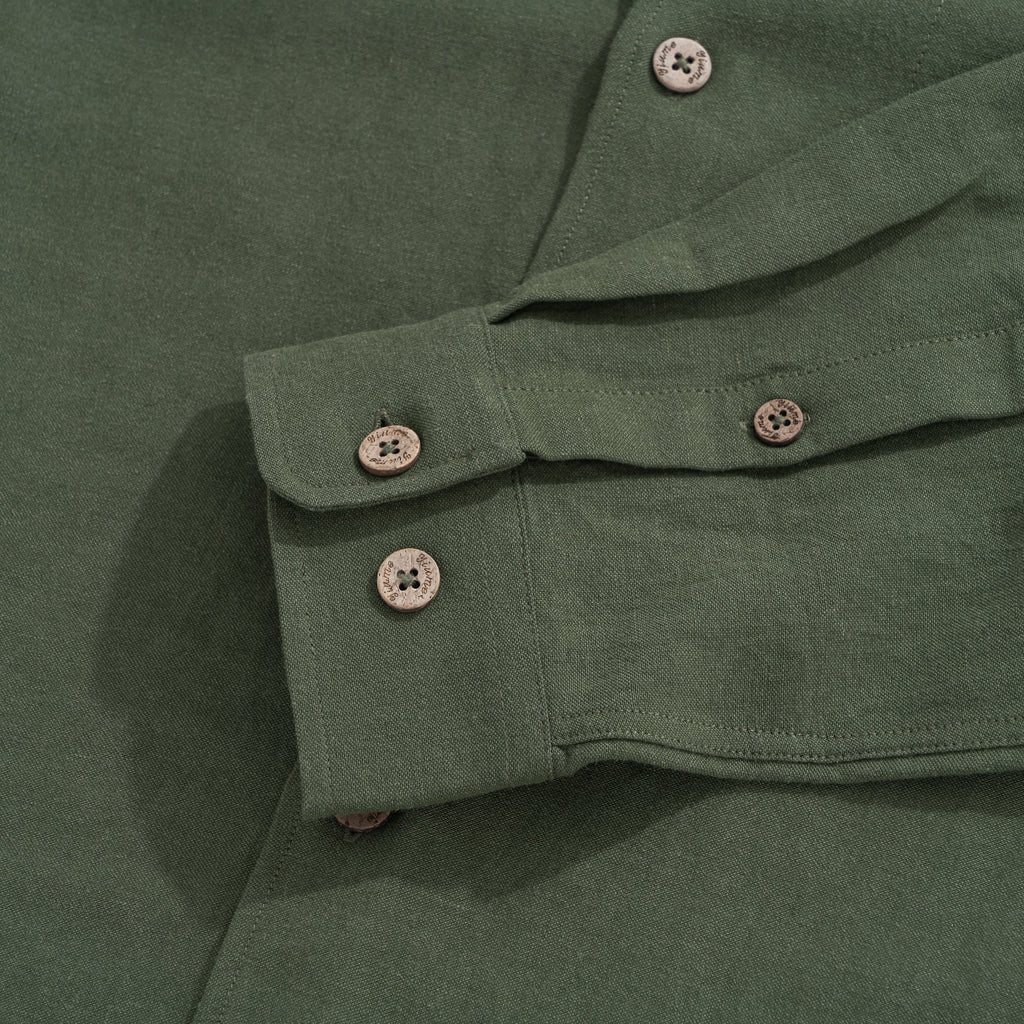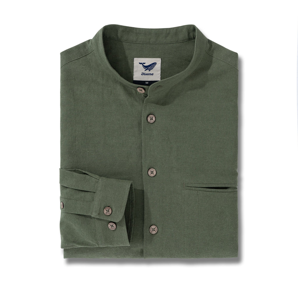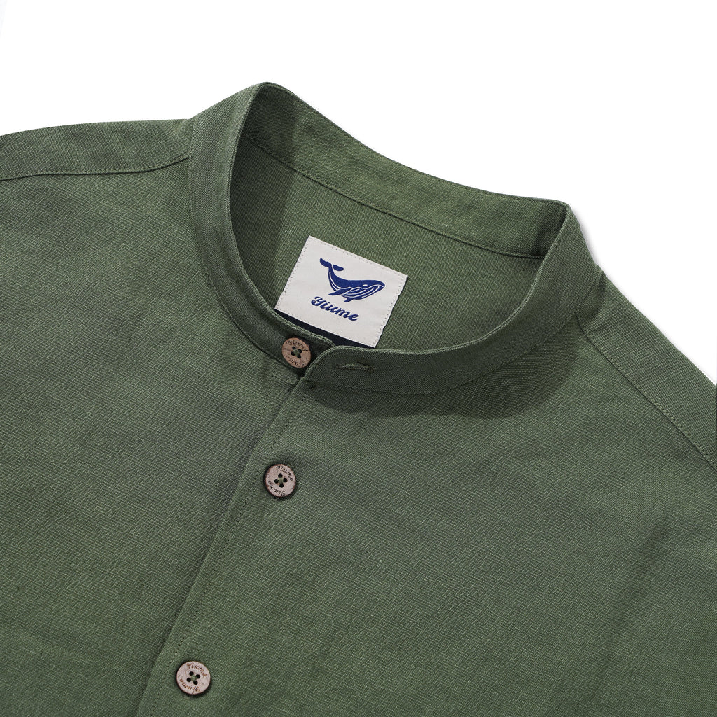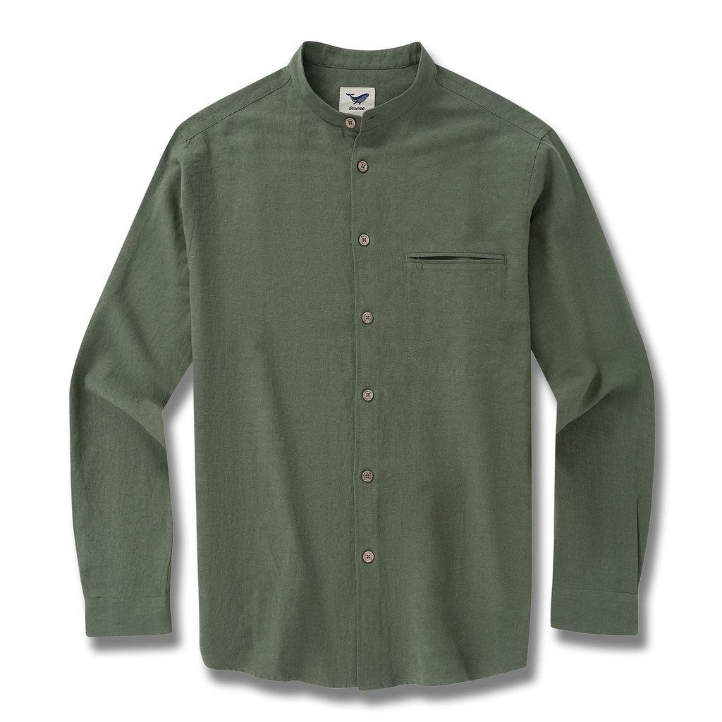 Hawaiian Shirt For Men Italian Nobleman's Ramie Band Collar Shirt - Military Green Italian Nobleman's Ramie Shirt - Military Green
