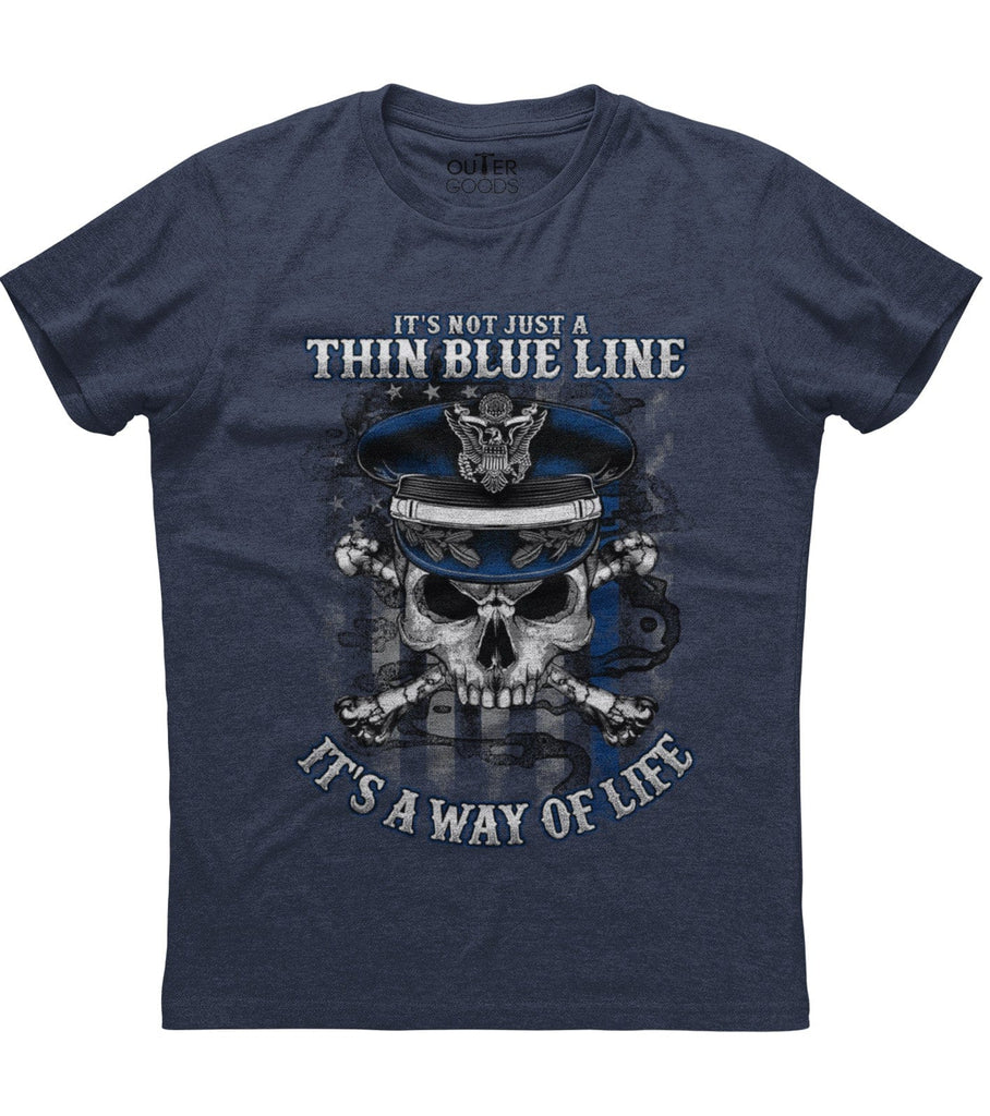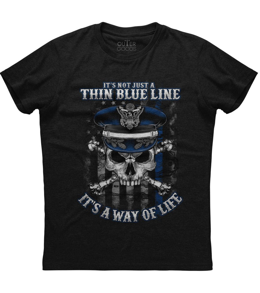 It's Not Just A Thin Blue Line It's A Way Of Life Skull Bones T-Shirt (O)