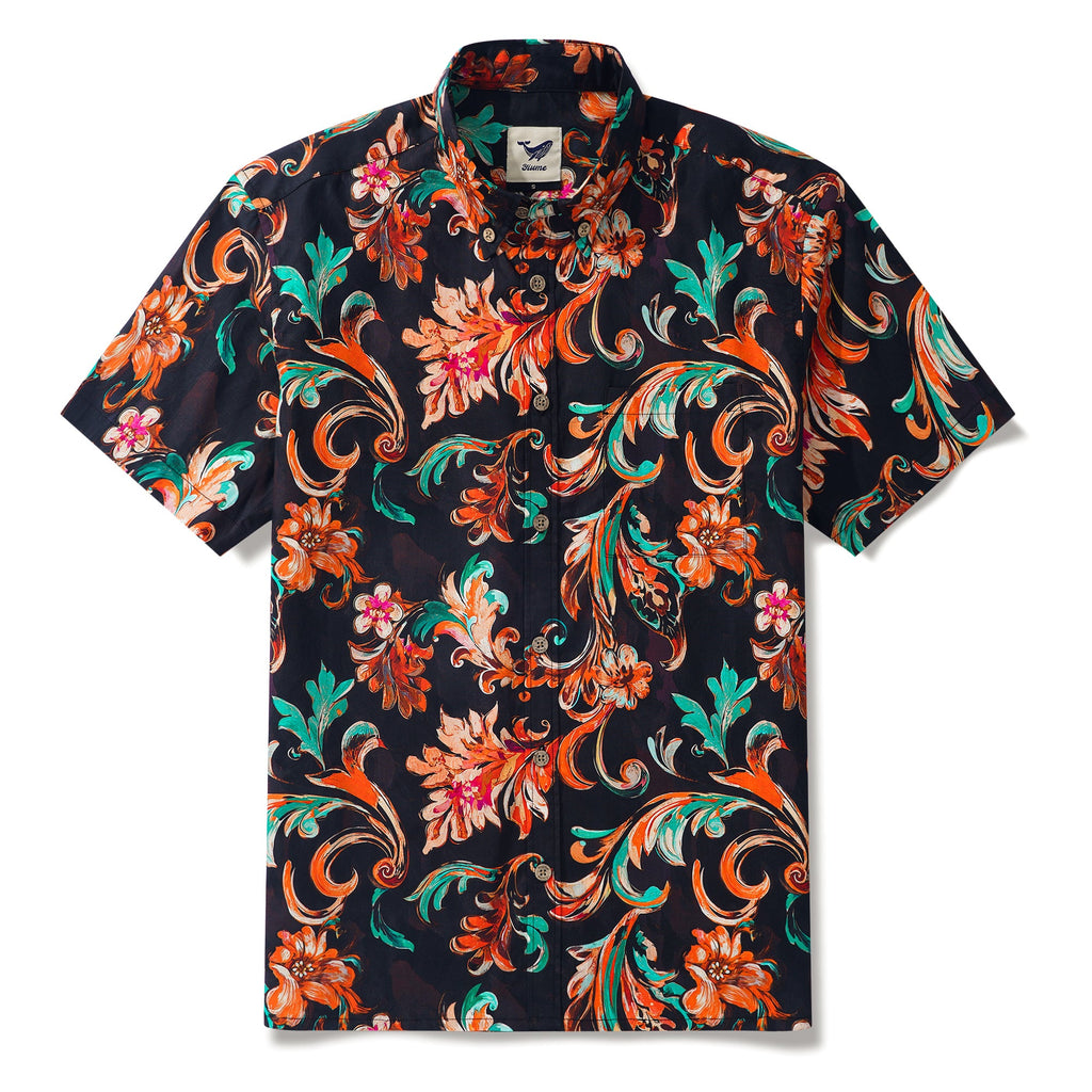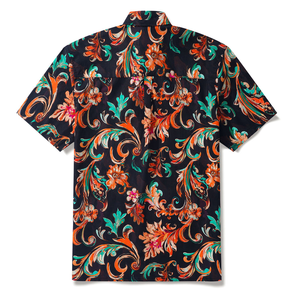 Men's Hawaiian Shirt Short Sleeve Button-down 100% Cotton Brown Aloha Fiery Blossoms