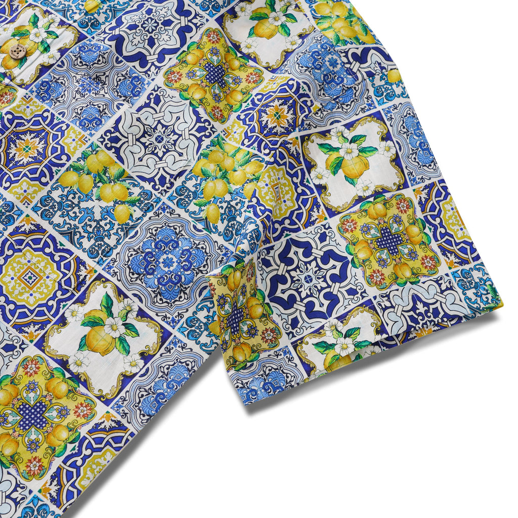 Men's Hawaiian Shirt Short Sleeve Button-down 100% Cotton White Aloha Dream of Palermo