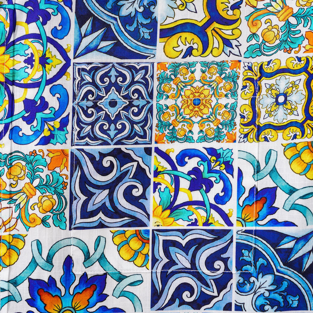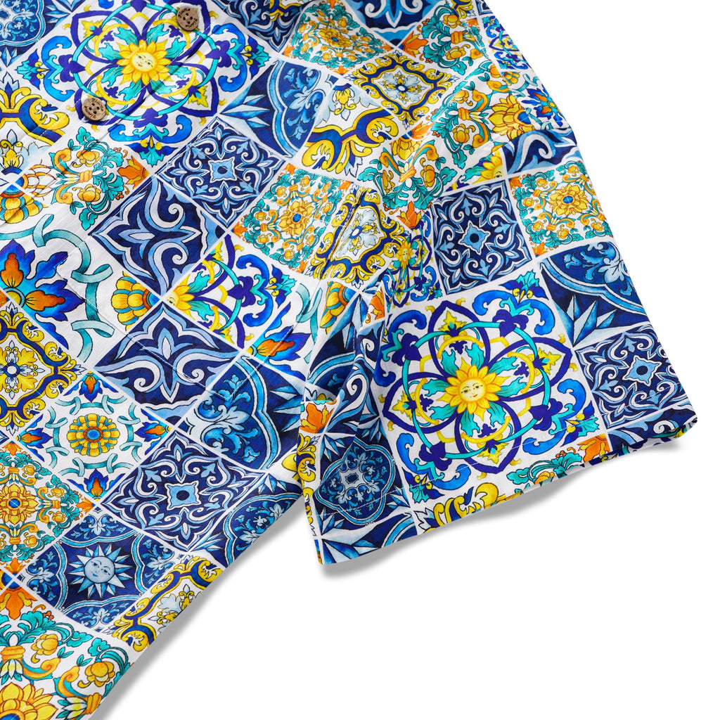 Men's Hawaiian Shirt Short Sleeve Button-down 100% Cotton White Aloha Sicilian Tile Elegance Collection