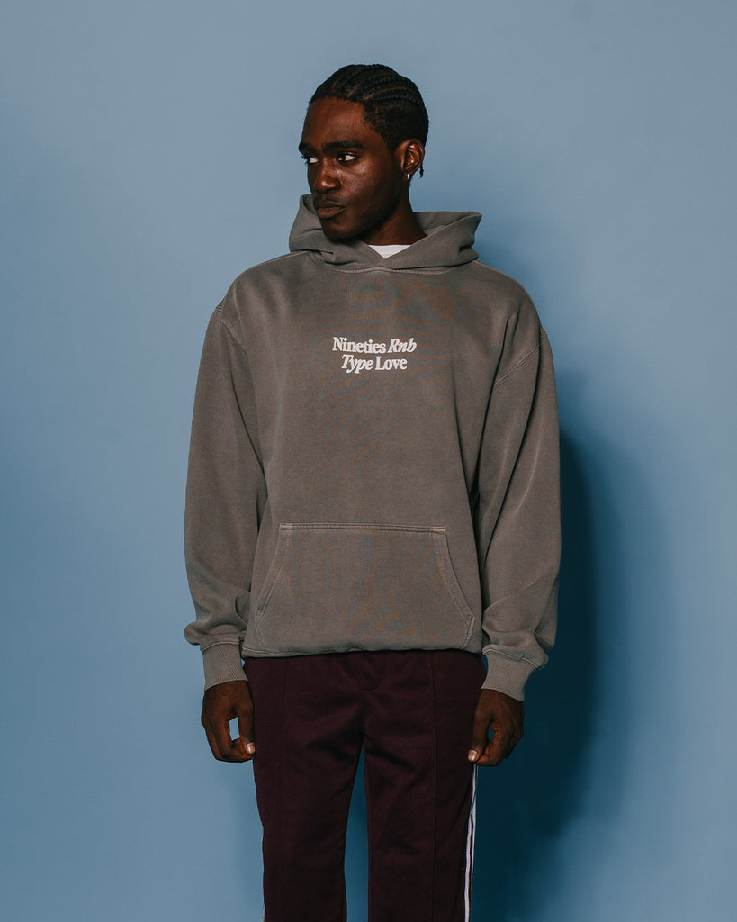 Nineties Rnb Type Love Relaxed Faded Grey Hoodie