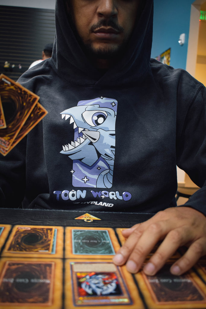 YUGIOH TOON BLUE EYES HOODIE (WASHED BLACK)