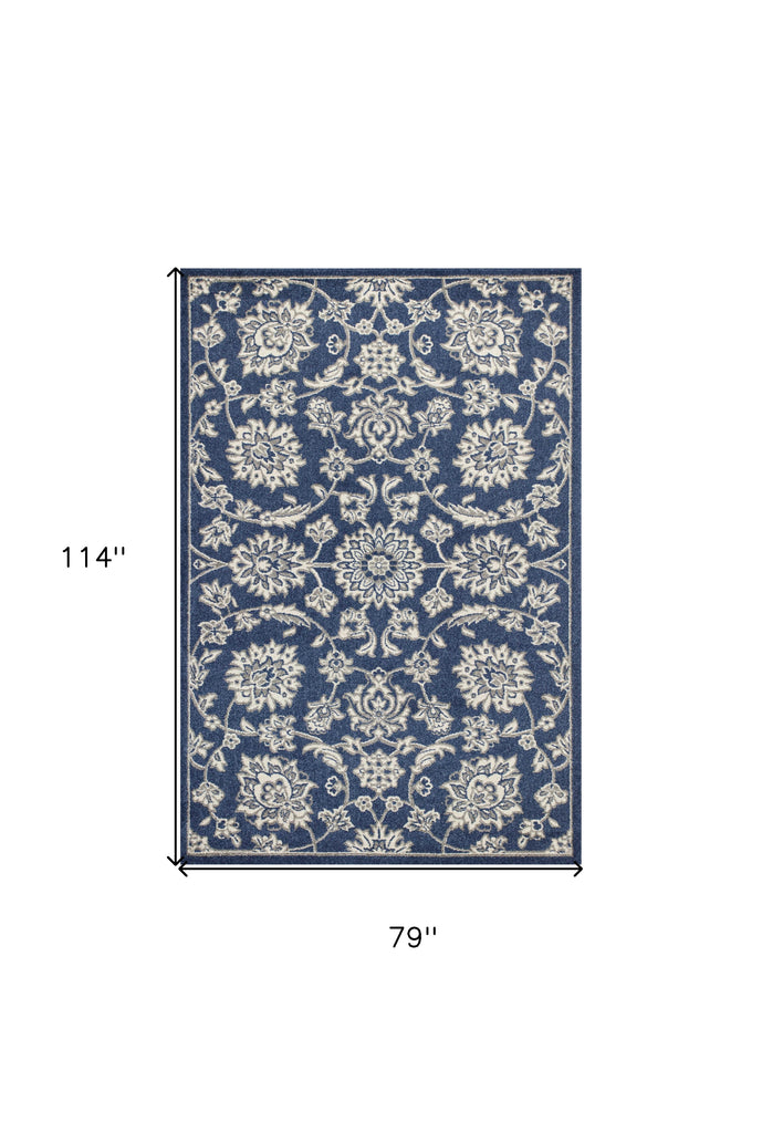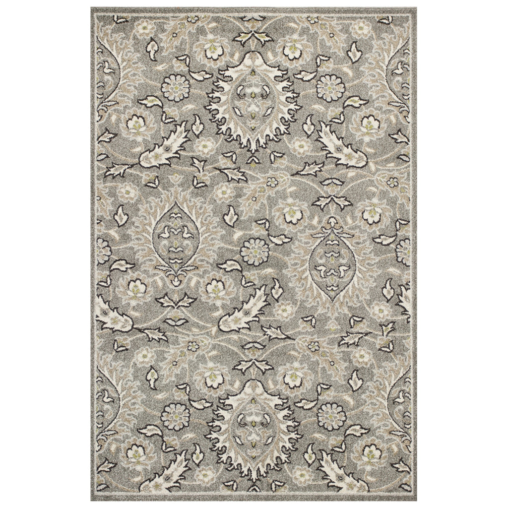 7' X 9' Grey Floral Vine Uv Treated Indoor Area Rug