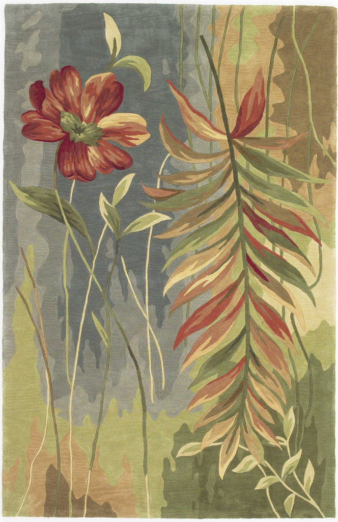 8'X10' Blue Green Hand Tufted Tropical Plant Indoor Area Rug