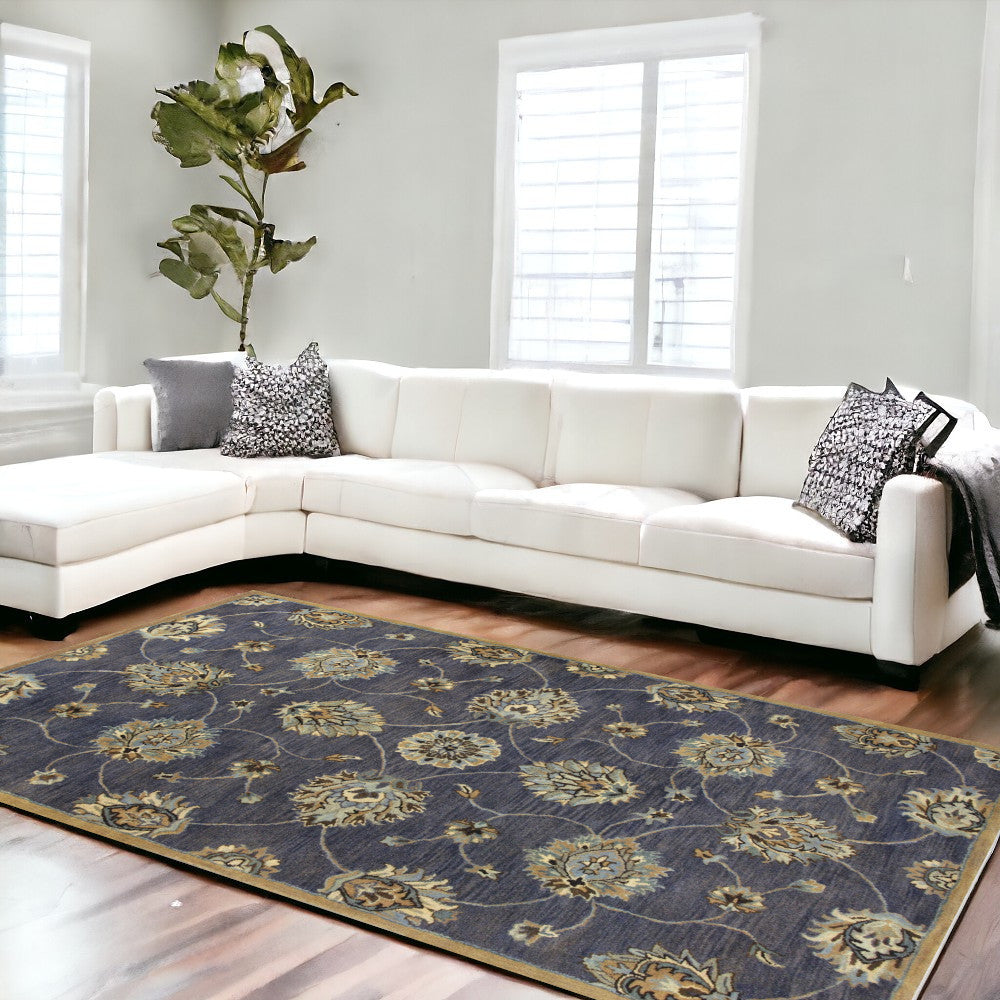 8'X11' Midnight Blue Hand Tufted Traditional Floral Indoor Area Rug