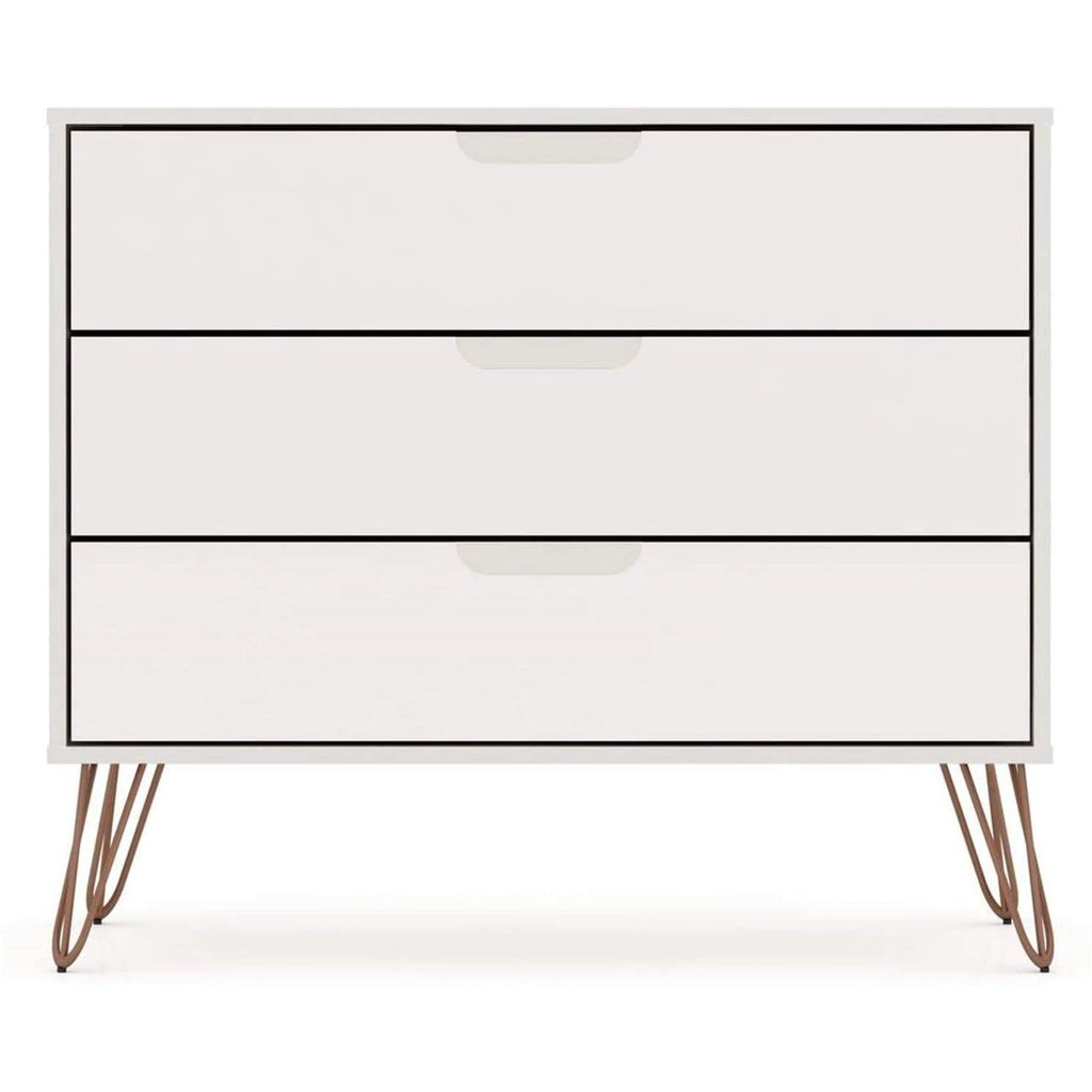 - Have a Gorgeously Stylish Storage Unit in Your Place with the Rockefeller Dresser by Manhattan Comfort, Featuring a Sleek Midcentury Design in a Luxurious White Finish