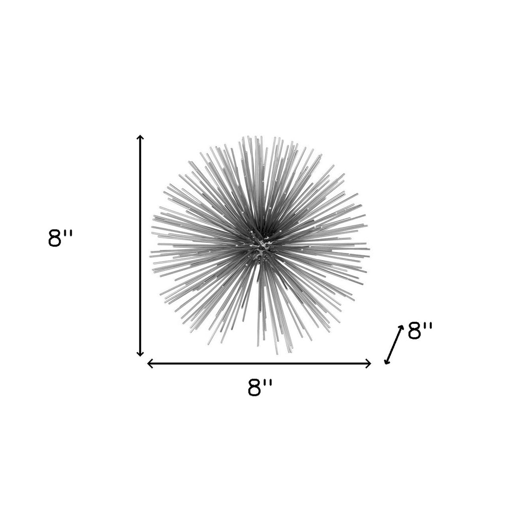 Add an air of fashion to your room and rejuvenate the space with this 8" silver metal spiky sphere. This silver hued piece represents high quality, expertly made from high grade metal. A perfect decorative addition for anyone who loves a stylish look and feel. You can be certain that you'll be leaving an impression with this unique piece. 8" H x 8" W x 8" D