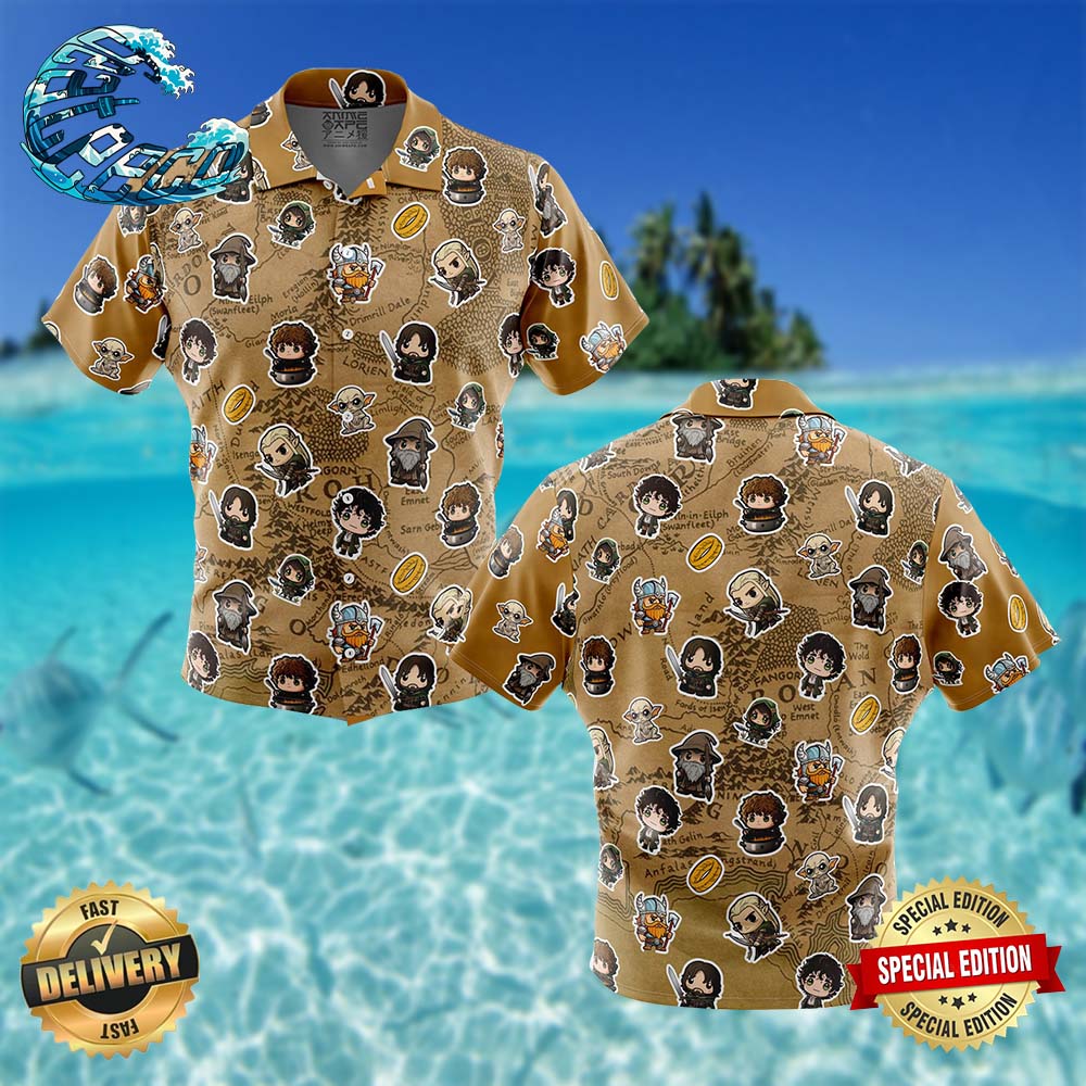 Chibi Fellowship Of The Ring Pattern The Lord Of The Rings Button Up Hawaiian Shirt