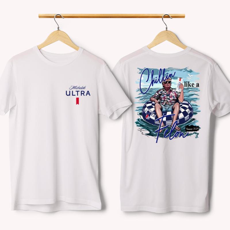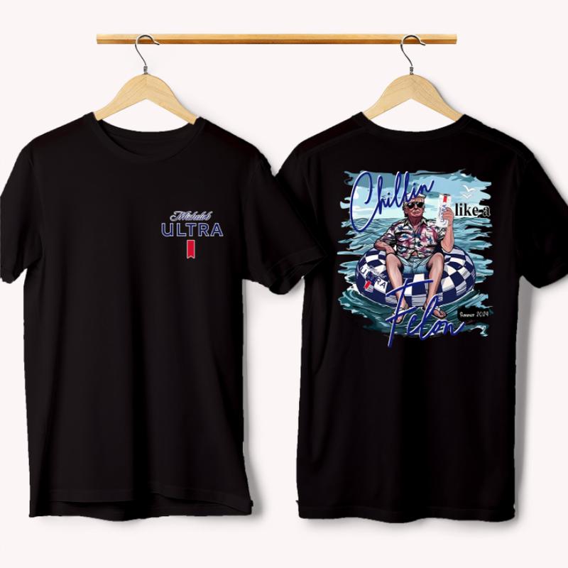 Chillin like a Felon Summer 2024 shirt, Michalob Ultra Unisex shirt,Funny Daddy Meme Michelob Ultra Beer 2024 Shirt - Classic Cotton Short Sleeve Top for Men - Man Menswear Underwear Tshirt