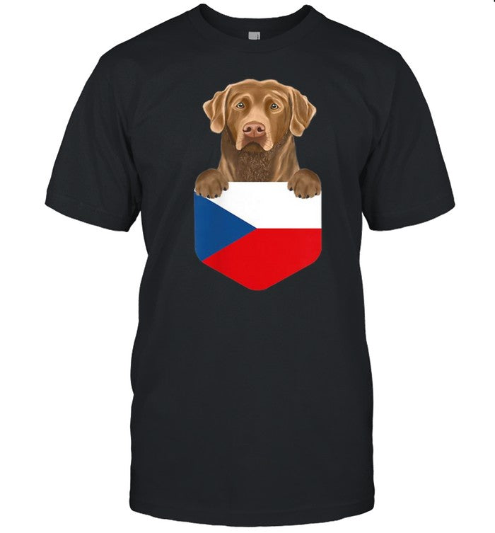 Czech Republic Flag Chesapeake Bay Retriever Dog In Pocket shirt_1