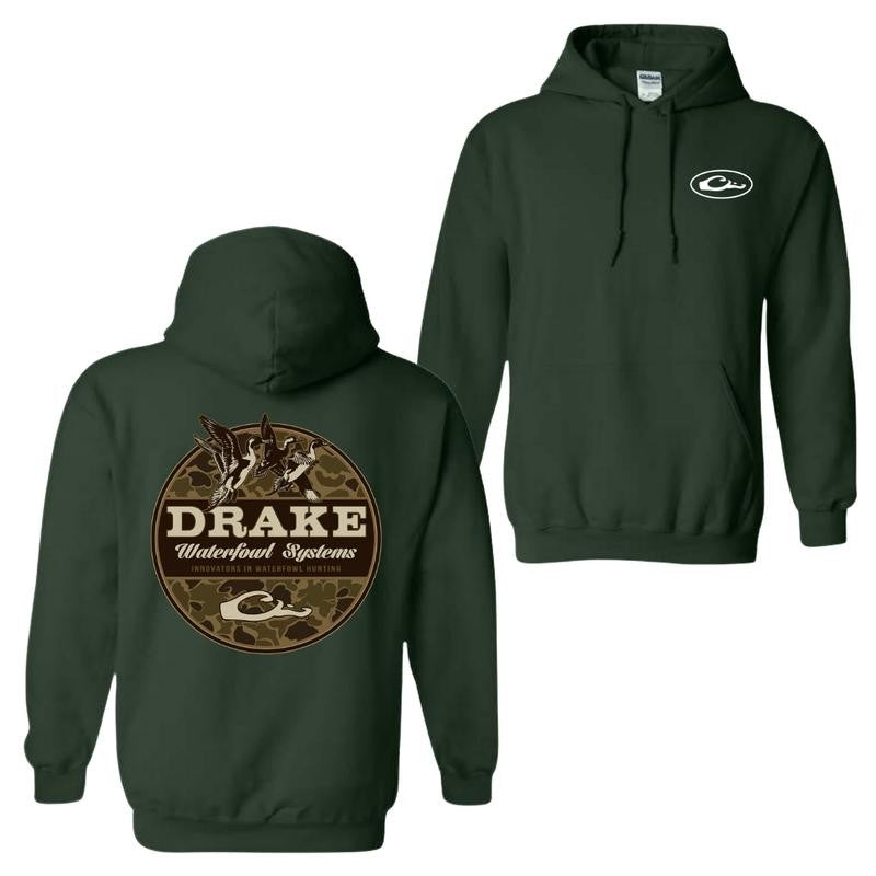 Drake Waterfowl 2 Sides Camo Hunting Hoodie and T-shirt, Classic Cotton Menswear Top
