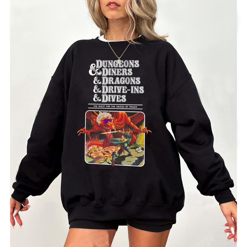 Dungeons And Diners And Dragons And Drive-Ins And Dives Shirt, Dragons Playing Houses And Humans T-Shirt, Sweatshirt, Hoodie, DnD Sweatshirt, RPG Gift