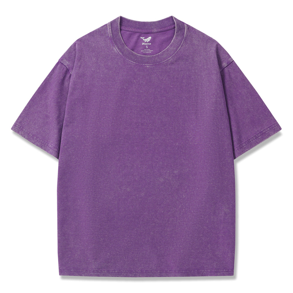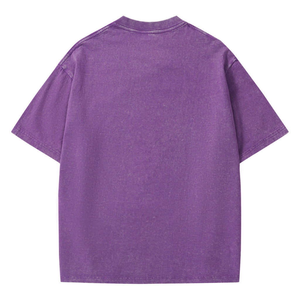 Hawaiian Tee For Men Crew Neck 100% Cotton Vintage Washed T-Shirt - Purple