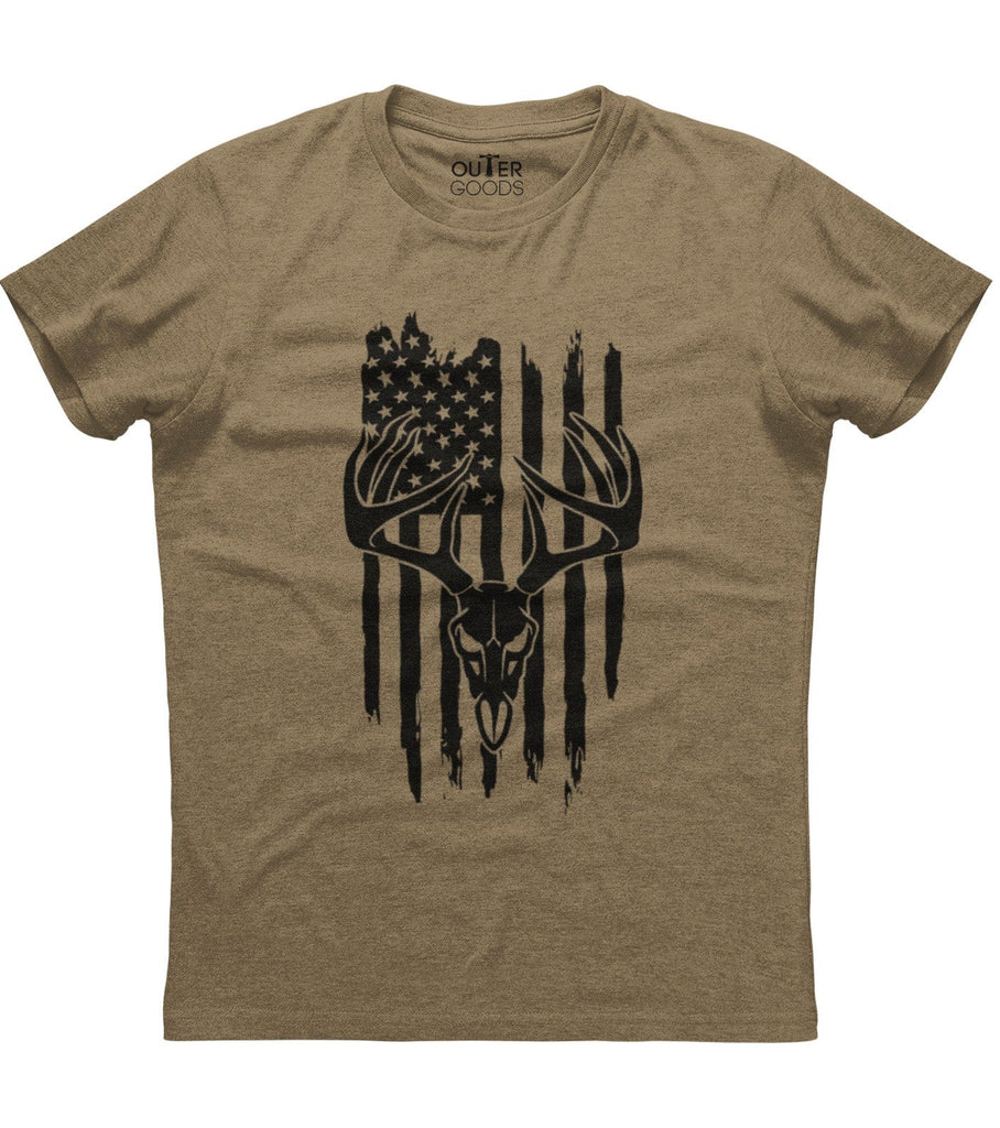 Hunting Deer USA Flag Patriotic Mens Heavy Weight T-Shirt (O)