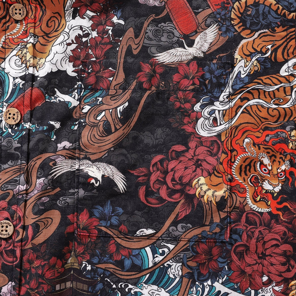 Men's Tiger Shirt 1950s Vintage Hawaiian Shirt For Men Short Sleeve Cotton Aloha Shirt Tiger In The Mist