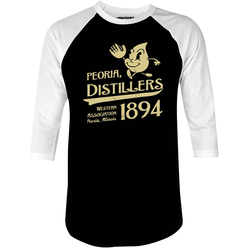Peoria Distillers - Illinois - Vintage Defunct Baseball Teams - 3/4 Sleeve Raglan T-Shirt