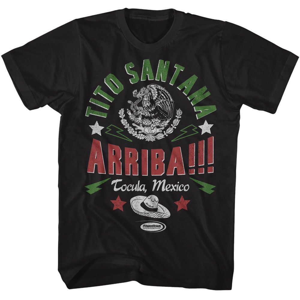 Powertown Tito Santana Mexico Black Solid Adult Short Sleeve T-Shirt