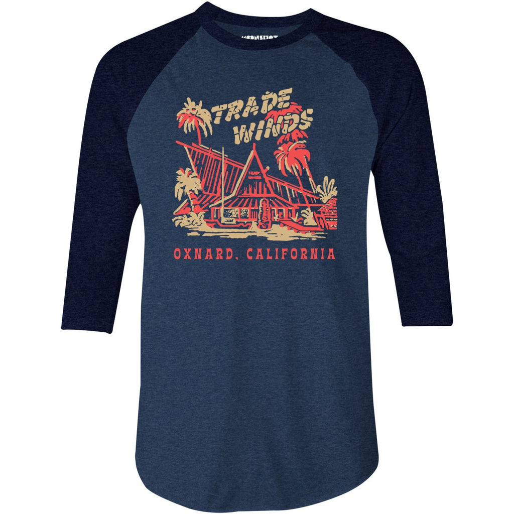 Trade Winds - Oxnard, CA - Vintage Tiki Bar - 3/4 Sleeve Raglan T-Shirt
