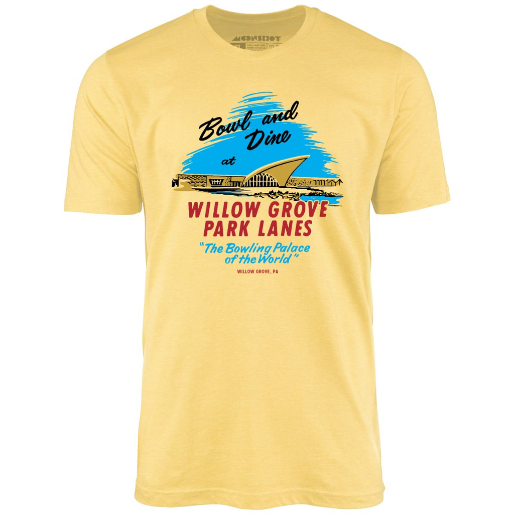 Willow Grove Park Lanes - Willow Grove, PA - Vintage Bowling Alley - Unisex T-Shirt