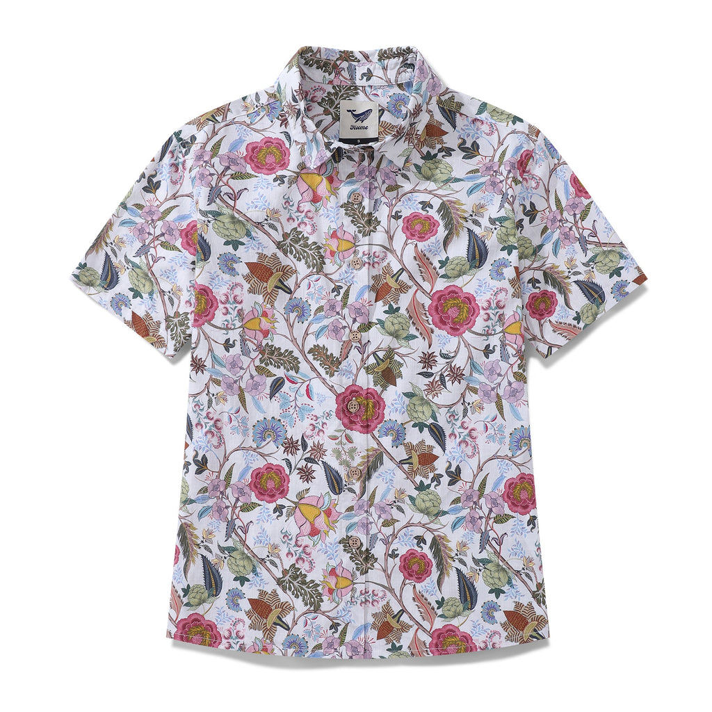 Women's Hawaiian Shirt Chintz Spring Colors Print By Christina Brimage Cotton Button-up Short Sleeve